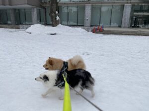 少し前になりますが、2月に雪が降った時の写真です。(ボケてますが💦)2匹とも久しぶりの雪ではしゃいでました⛄️顔を雪の中に突っ込んで雪まみれですǶ